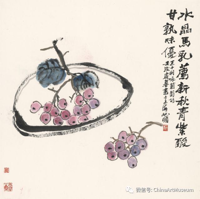 朱屺瞻《水晶马乳(葡萄)》67.5x67.5厘米