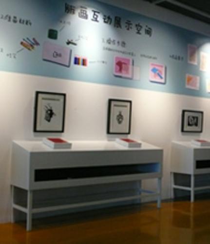 互动区,采用浦东特殊教育学校的残障儿童刻制的版画母板,设计了六款仿照传统印章的拓印互动游戏。观众可以在现场将纸张覆盖在母板上,用蜡笔或铅 笔涂抹以获得图案的拓片,并将其留作纪念。它使人们通过实际操作体验并了解版画的印制乐趣。在互动体验区,可以适量取用纸张与腊笔,将纸张覆盖在模板 上,用腊笔涂抹,即可将模板上图案拓印到纸张上,通过动手体验,了解版画的印刷方式。