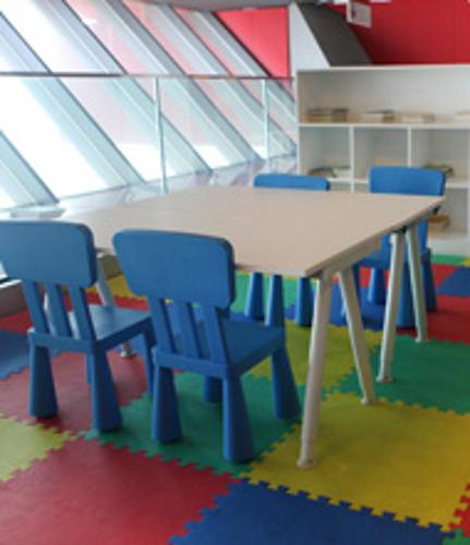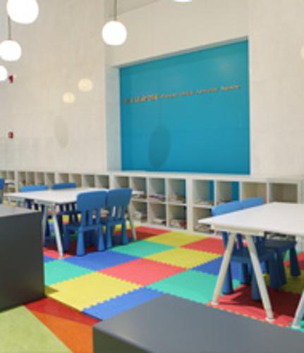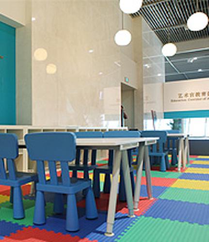 空间位于长廊的中部和端头部分,我们放置了部分儿童桌椅和书柜,陈列了适合儿童阅读的画册和书刊,周边有可供家长辅导看护的凳子。总体上为参观展览的儿童和家长提供了一个安逸舒适的阅读体验和休闲空间,为接下来的参观活动做心理上的适应和体力上的调整。旨在让儿童进入中华艺术宫体验艺术氛围、获取艺术知识,在属于自己的艺术天地中与父母共同阅读艺术书籍。