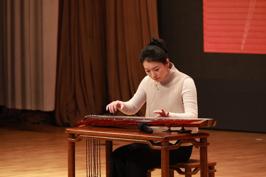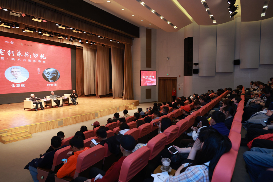 “流影清音”之夜致力于为观众打造超越传统观展、观影的高品质沉浸式体验。银幕上播放着水墨动画《山水情》,耳畔传来古琴配乐的现场演奏。琴音与光影相融,现场观众仿佛置身于影片的山水之间。活动现场,导演郑大圣,作曲家、《山水情》音乐原作者金复载、《山水情》古琴配乐演奏者龚一展开深度对谈,带领观众一同潜入创作现场。